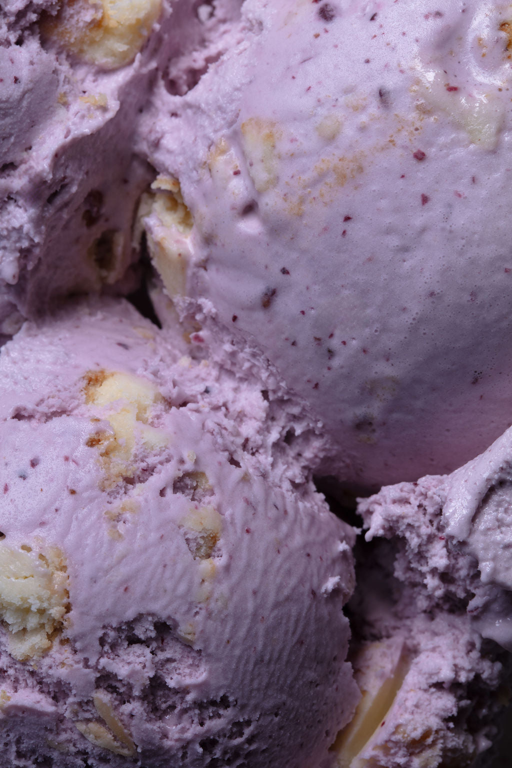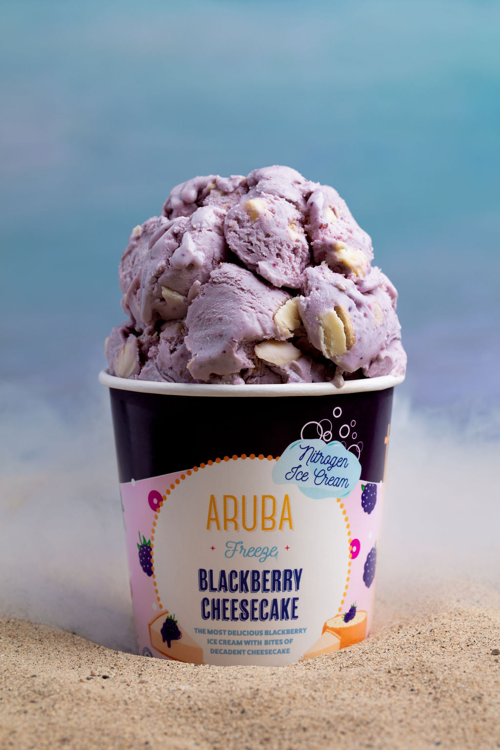 The Most Delicious BlackBerry Nitrogen Ice Cream -Ever With Bites Of Decadent Cheesecake And Our Homemade Fresh BlackBerry Puree!